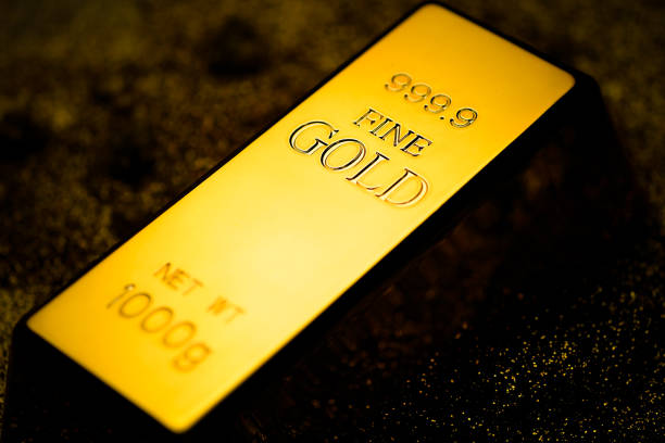 Gold bar or bullion on a gold glittering powdered surface ,elegant and luxury concept